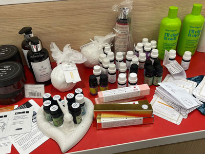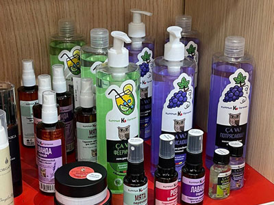 В вагоне красоты мы представляем наши уже полюбившиеся шампунь Виноградная романтика и гель для душа Загадочный коктейль, а также наш топ-продукт - крем для ног с мочевиной 30%. Эфирные масла будут самые лучшие: апельсин, лимон, пихта, чайное дерево, эвкалипт, кедр и, конечно, всеобщая любимица - литсея кубеба. Можно будет приобрести три органических гидролата - Розы дамасской, Мяты перечной и Лаванды горной.